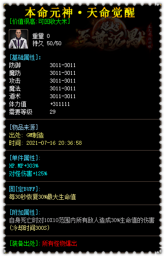 【版本介绍】: 永久回收装备好爆 装备全部真实爆出 小怪掉落终极