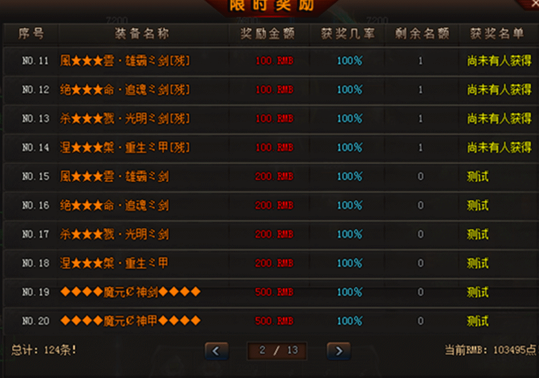 - 【充值比例】:《元宝:1:5000》《主宰币1:100》点卡赠送90%,网银赠送100%!!