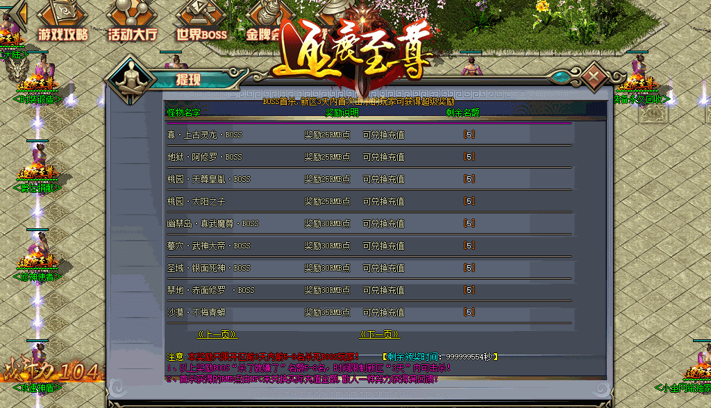 ⑤.元宝好打 等级好升 满屏BOSS 千件限时奖励 散人吊打土豪