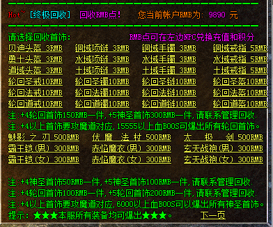 散人福利:本服装备回收可直接兑换赞助充值,终极剑甲直接爆!