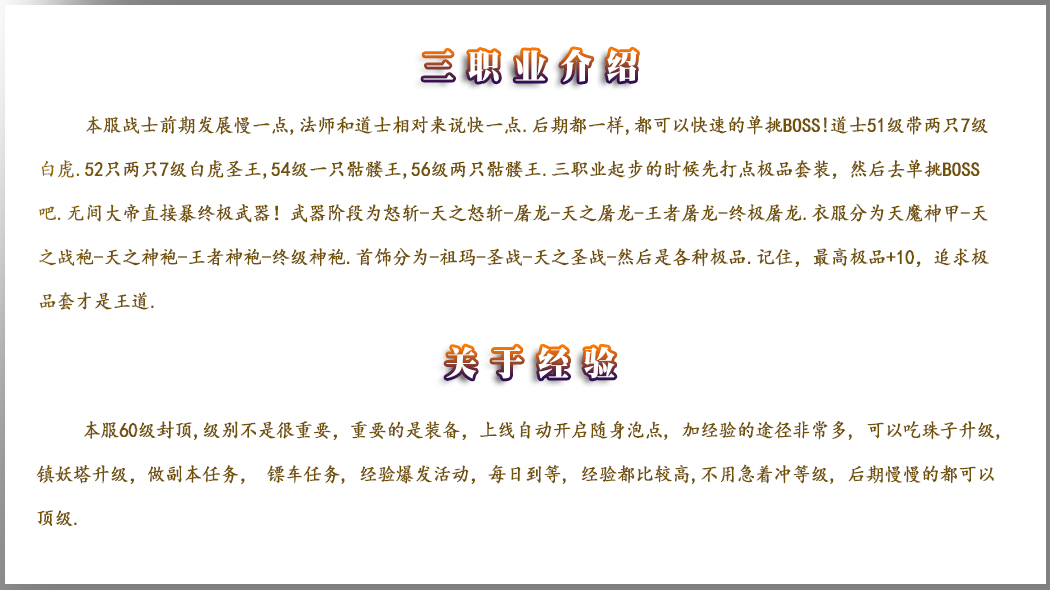 全新独家,60级封顶,新区三天拿沙,老区2.4.6拿沙,奖励50000元宝