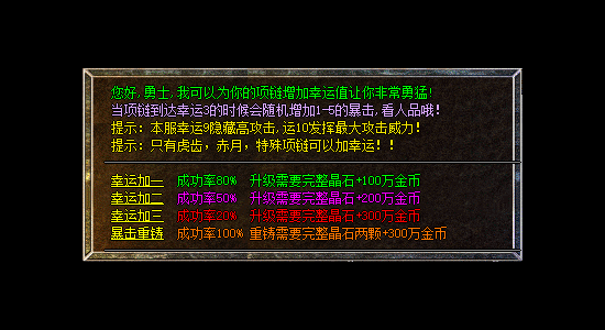 2游戏介绍:长期耐玩,装备保值,技能保值.装备成长.纯复古特色金币特戒传奇!