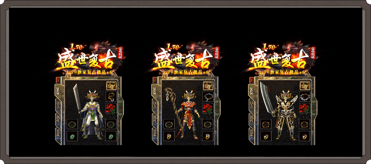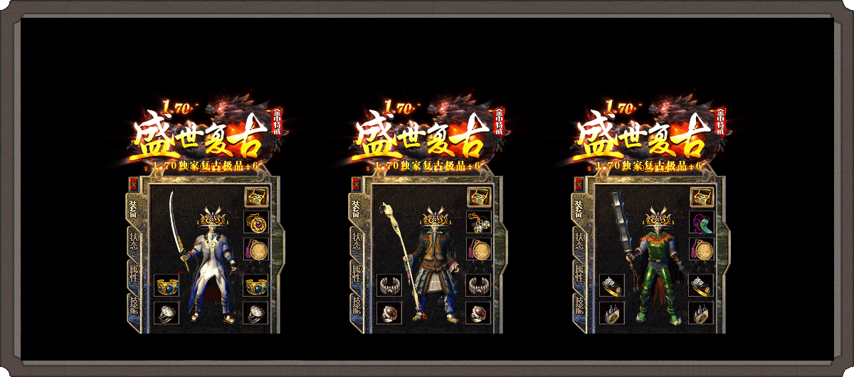 6装备层次:垃圾商店套-沃玛套-祖玛套-圣战套-盛世套-特殊buff-免费开启首饰盒!