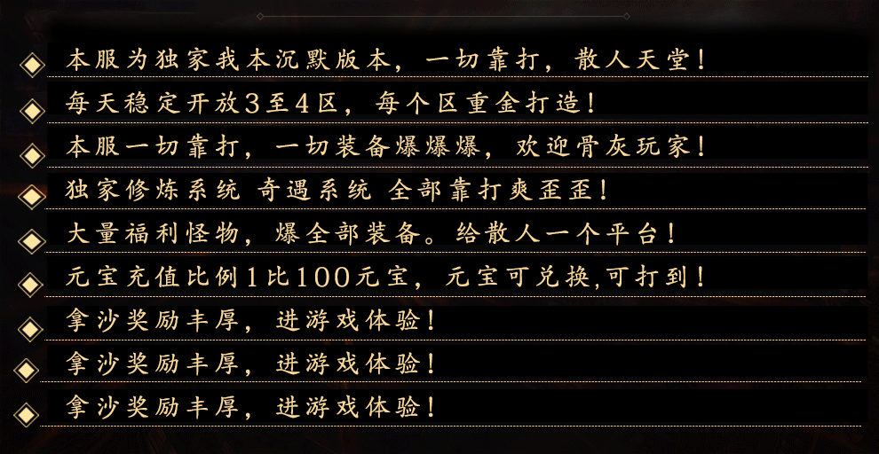 本游戏由 《樱龙沉默》 独家运营 Al7 rights reserved. 版权所有 致力打造一个全民激情的好传奇!