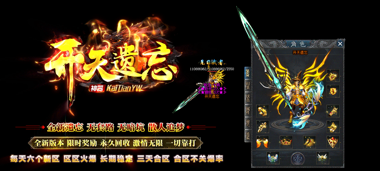 游戏说明:爆率全部开放.区区上百限时装备奖励.上线Q礼包免费领取