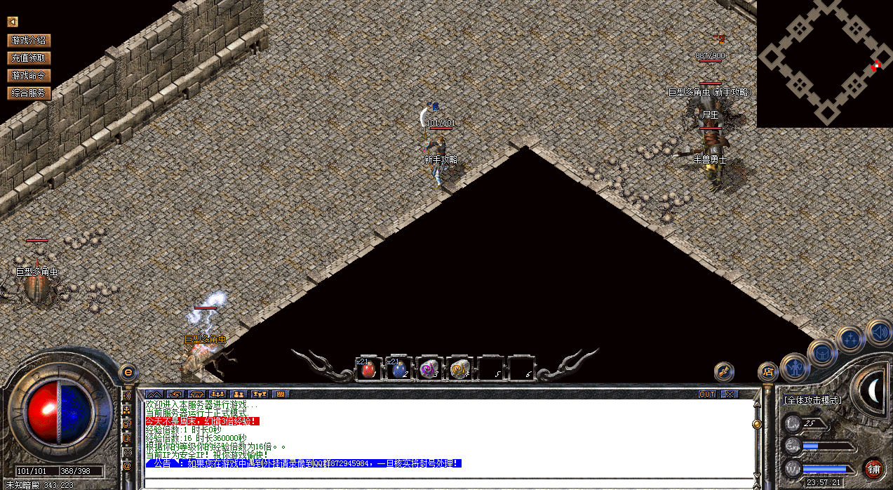 注意:法师玩家也可以前往未知暗殿召唤900血量的巨型多角虫,传送员直接传送需要一定数量的金币