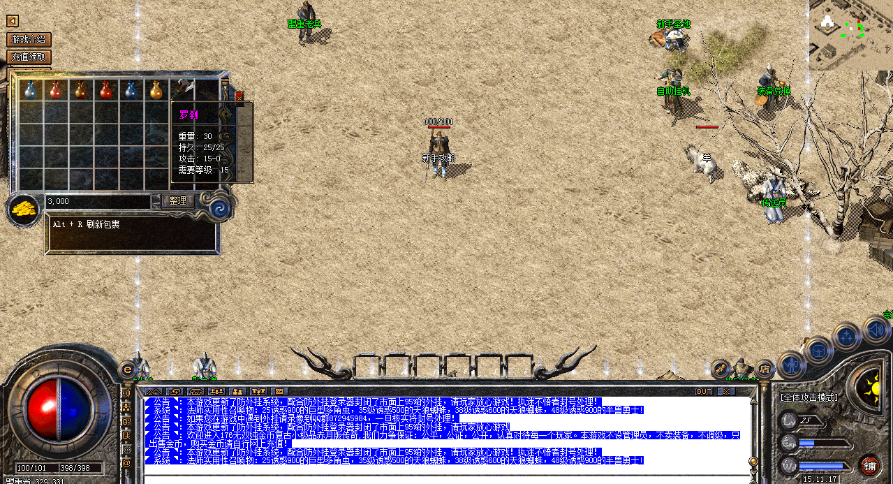 设置完成之后,点击npc,会将玩家传送至新手村,在新手村安全区外,有一个名叫新手练级的NPC,点击进入,能快速升级