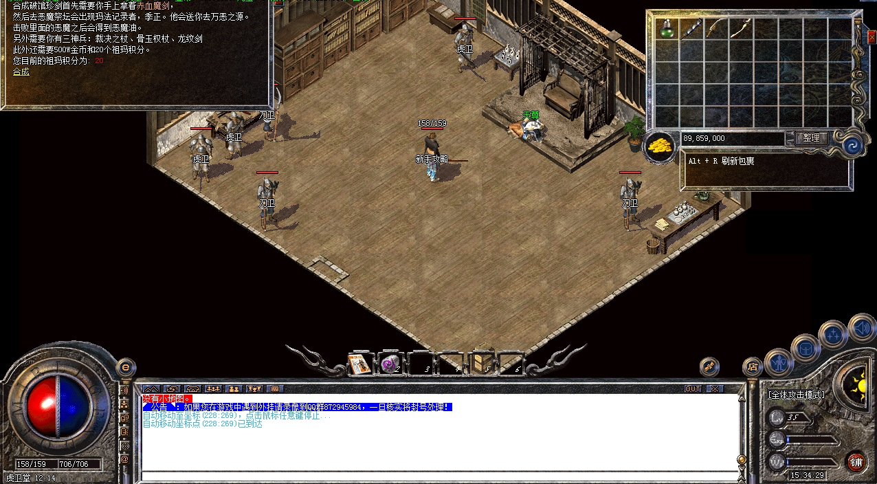 前往桃源之门(通过石墓7层进入或者使用高级地图传送卷进入),找到合成师,合成赤血魔剑