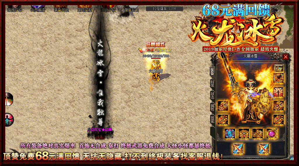 ①顶赞免费②在线领取元宝③终极靠打!满回馈68,回馈只是为了起散人步快一点!